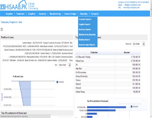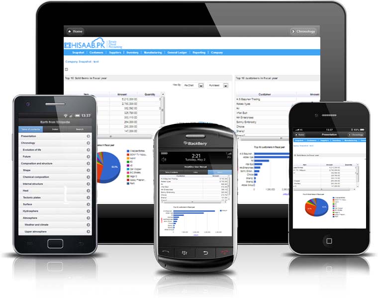 Hisaab.pk ERP is a 24/7 Online accounting application you can use anywhere, any time ! Accounting in the cloud. Check your reports on the go, access from your iPad and beyond, make collaboration easy, with the security and backups that you need. No worr