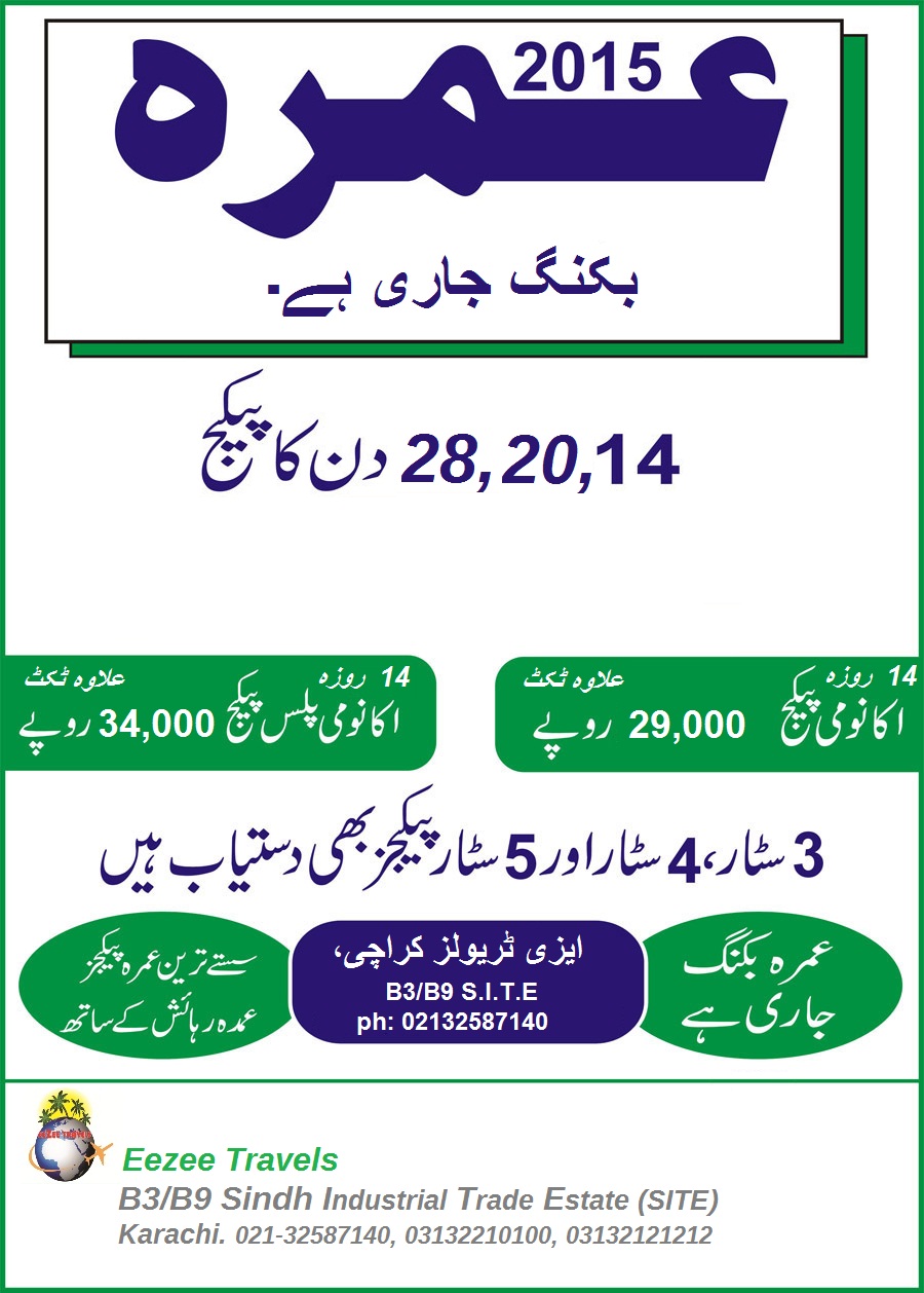EEZEE TRAVELS Provides Total Travel Solutions in SITE Area through one window, Our Services Hajj Assistance & Services Complete Umrah Packages Ticketing world wide Holiday Package Hotel booking world wide China visa Malaysia visa Thailand visa Uk visa filing From online Canada Visa filling From online